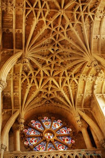 ????牛津?qū)W院漂亮的教堂建于1546年,是英格蘭最小的教堂。建筑最大的特點在于內(nèi)部的雙拱頂,讓大堂顯得更加高大壯麗。14世紀(jì)安裝的大型窗格,使建筑產(chǎn)生了哥特式的輕盈和空間感。名家設(shè)計的鮮艷華麗的彩色鑲拼玻璃令教堂內(nèi)的光線顯得光彩迷離,特別是圣壇旁名為圣凱薩琳之窗(St. Catherine’s Window)的彩色玻璃窗,把《愛麗絲夢游奇境》中愛麗絲的姐姐愛蒂絲描繪成圣人,吸引了大批書迷前來觀賞。