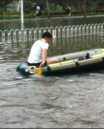 天津遇大暴雨襲擊澤變國 市民劃船出行