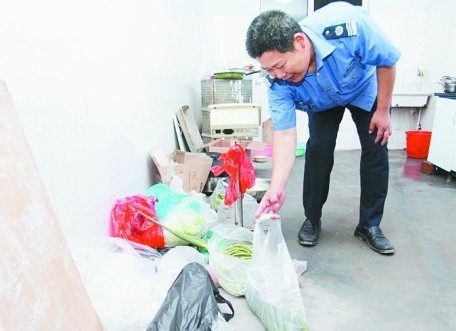 “條件確實是差些,可為了方便執(zhí)法,十幾個男執(zhí)法人員只得暫時住在這里。這里靠近碼頭近,一旦有情況,可第一時間趕到現(xiàn)場?!必?fù)責(zé)碼頭岸上巡邏的執(zhí)法員李敬福介紹。7月26日晚輪到李敬福值班,他簡單拌了兩根黃瓜,就拿起一個饅頭蹲在地上吃起來,“咱們在這里不可能大魚大肉的,湊合著填飽肚子就好了?!崩罹锤Pχf。