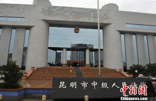8日一早,昆明就下起了大雨。記者8時(shí)許到達(dá)昆明市中院時(shí),已有許多遇害者家屬在安檢處排隊(duì)等候,入口處警務(wù)人員正在維持秩序。