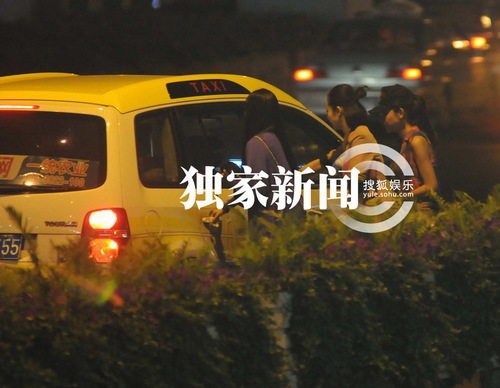 楊冪夜會戚薇酒后興奮 奔放搭肩路邊打出租(組圖)