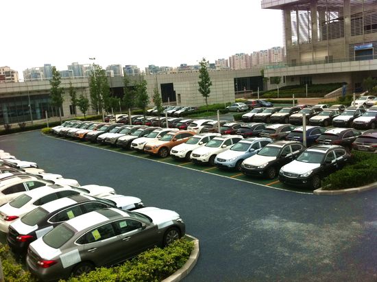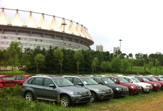 在國(guó)信體育中心轉(zhuǎn)了一圈,記者看到了寶馬、英菲尼迪、凱迪拉克三種車型。其中寶馬車最多,差不多有近300輛,車型從suv到跑車一應(yīng)俱全;緊隨其后的是英菲尼迪,同樣是