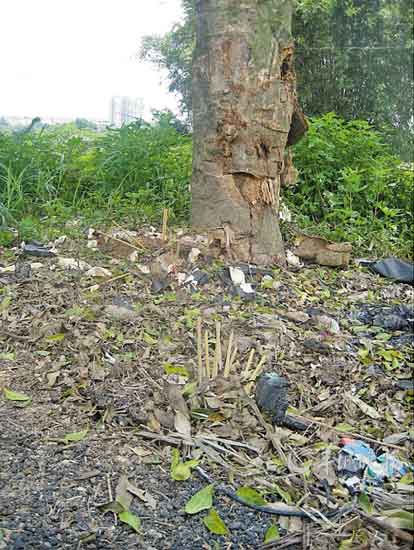 據(jù)知情人說,鄭泰聰?shù)能囎詈笞驳搅诉@棵樹上。30日,現(xiàn)場還留有祭拜過的痕跡