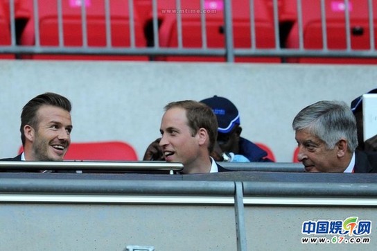 貝克漢姆攜子與威廉王子同席看球 迷倒女觀眾(組圖)