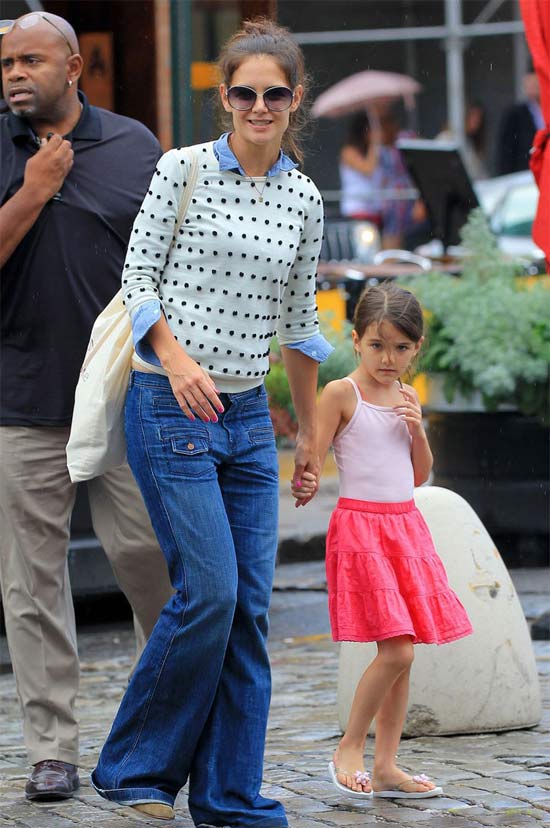 凱蒂帶小蘇瑞雨中漫步 母女同行親密溫馨(組圖)