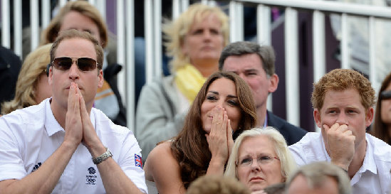 ????2012年7月31日,2012年倫敦奧運(yùn)會(huì)第4日,馬術(shù)比賽精彩賽況。威廉王子攜凱特王妃,以及哈里王子助威馬術(shù)賽。