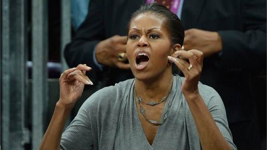 米歇爾·奧巴馬為美國男籃歡呼。美國第一夫人米歇爾在美國和法國之間進(jìn)行的男子籃球比賽之中。