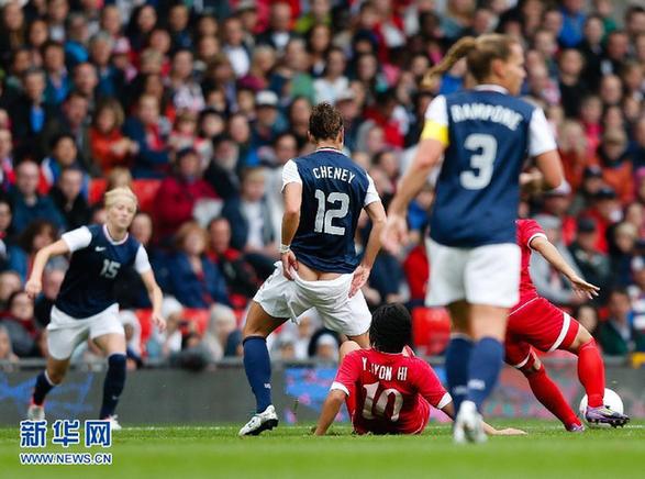 7月31日,美國隊(duì)球員切尼在與朝鮮隊(duì)球員拼搶時(shí)不慎被拉下短褲。當(dāng)日,在倫敦奧運(yùn)會女子足球小組賽G組最后一輪比賽中,美國隊(duì)以1比0戰(zhàn)勝朝鮮隊(duì)。
