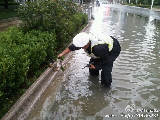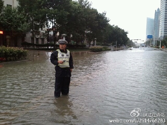 @駐在青島 : 泡在水里的交警,老百姓給您敬個禮!感謝您!今天早晨在東海路。