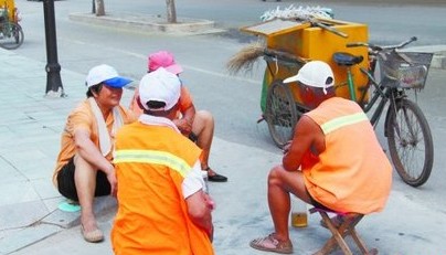7月29日是上周最熱的一天,紅旗路上辛苦一天的環(huán)衛(wèi)工在街邊乘涼。