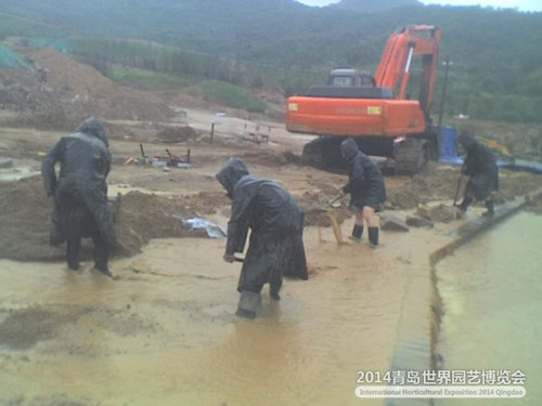 ????接到市城防辦臺(tái)風(fēng)預(yù)警通知后,青島世園執(zhí)委會(huì)及世園會(huì)防汛辦緊急召開園區(qū)建設(shè)工程防臺(tái)風(fēng)會(huì)議,按照世園會(huì)防汛專項(xiàng)預(yù)案啟動(dòng)了二級(jí)應(yīng)急預(yù)案,并加強(qiáng)了與市、區(qū)防汛部門的聯(lián)系與信息共享。各參建施工單位立即按照預(yù)案要求對(duì)現(xiàn)場(chǎng)進(jìn)行隱患排查和設(shè)施加固,完成了河道、沖溝清理及防汛人、機(jī)、物的準(zhǔn)備。