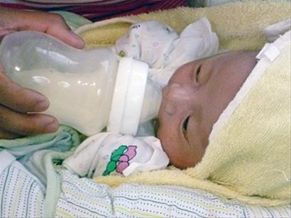 下午2時許,老趙抱著恩永去兒科專家診室檢查,經(jīng)過醫(yī)生詢問病情和診斷,恩永身體正常?!皨胗變涸谖鼓唐陂g都會發(fā)生嗆奶,恩永多次出現(xiàn)嗆奶,可能和喂奶的姿勢不正確有關(guān)?!贬t(yī)生看了下恩永用的奶瓶,建議喂奶時頭部和頸部稍微墊高一些。