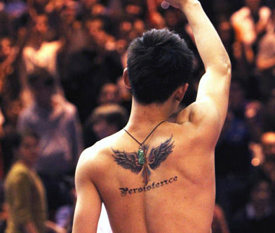 ????張繼科背后那展翅高飛的圖案,正是他的心愿?!皃ersistence”的英文,意思是堅(jiān)持、毅力,在他的心中就是持之以恒。這樣的寓意,是他對(duì)自己的激勵(lì),更是對(duì)自己的期待。文身,放在普通的年輕人身上,也許并不會(huì)引起太多的關(guān)注,但在國(guó)乒這支紀(jì)律嚴(yán)明、管理嚴(yán)格的隊(duì)伍中,張繼科多少顯得有些另類。其他隊(duì)員想都不敢想的事情,而張繼科不僅敢想,還付諸行動(dòng)了。這就是他的個(gè)性,被劉國(guó)梁稱為“藏獒”的血性。