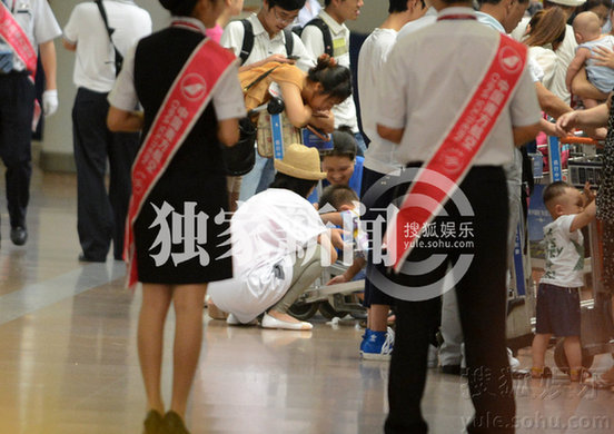 何炅謝娜童心爆發(fā)當(dāng)孩子王 機(jī)場跳舞引圍觀(組圖)