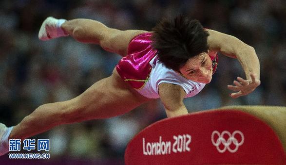這是8月5日,丘索維金娜在倫敦奧運(yùn)會(huì)女子跳馬決賽中。最終她獲得了第五名。