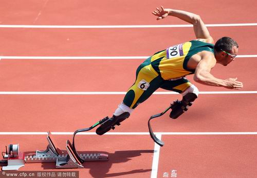 ????2003年,皮斯托瑞斯因?yàn)殚蠙烨驅(qū)е碌南ドw受傷之后,把興趣轉(zhuǎn)向了跑步,一個(gè)偶然的傷病也促使了一段田徑傳奇的開(kāi)始。2004年,剛開(kāi)始跑步訓(xùn)練的皮斯托瑞斯參加了雅典殘奧會(huì),并奪得一枚金牌,在2008年北京殘奧會(huì)上,他更是贏得這三個(gè)項(xiàng)目的金牌。然而,皮斯托瑞斯并不滿足于殘奧會(huì)金牌,他最大的夢(mèng)想就是參加健全人的奧運(yùn)會(huì)。2008年前,他就拼命訓(xùn)練想要參加北京奧運(yùn)會(huì),但是由于成績(jī)不達(dá)標(biāo),他的夢(mèng)想被推遲了一步。