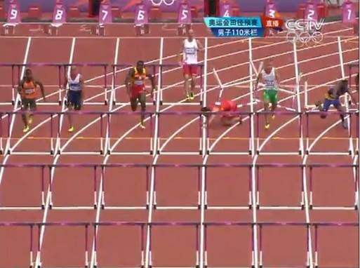 劉翔在跨越第一個欄時跌倒 無緣半決賽