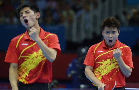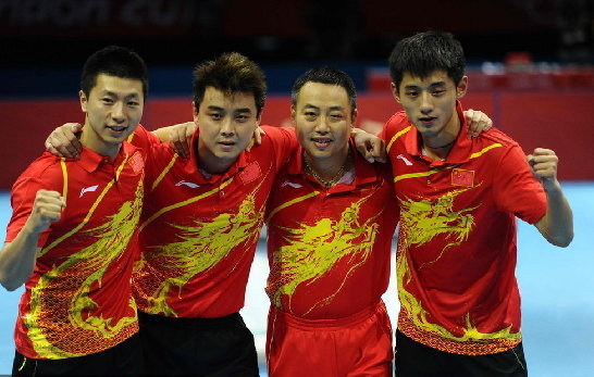 在倫敦奧運(yùn)會(huì)中,中國(guó)乒乓球隊(duì)繼續(xù)著自己打遍天下無(wú)敵手的態(tài)勢(shì),張繼科、王皓、李曉霞和丁寧 已有包攬男女單打金銀牌,男女團(tuán)體金牌也被中國(guó)代表團(tuán)收入囊中。自1988年漢城奧運(yùn)會(huì)乒乓球成為奧運(yùn)會(huì)正式比賽項(xiàng)目以來(lái),中國(guó)隊(duì)奪得了全部28枚金牌中的24枚,乒壇霸主地位無(wú)人能撼。為中國(guó)男乒加油!