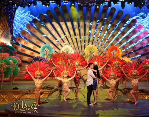 在劉愷威的魔術(shù)秀中,楊冪傾情擔(dān)任助演,全程見證了這場(chǎng)魔術(shù)奇跡。劇照中,楊冪身穿藍(lán)色小禮服,戴著同色小禮帽,性感而不失可愛,有模有樣地協(xié)助劉愷威完成魔術(shù)。楊冪的愛心加盟和精彩表演,也使得劉愷威的魔術(shù)更加摩登、養(yǎng)眼。整場(chǎng)水下逃脫表演緊張又充滿懸念,當(dāng)劉愷威從水面一躍而出時(shí),威冪兩人難抑興奮的表情和勝利的喜悅,情不自禁在臺(tái)