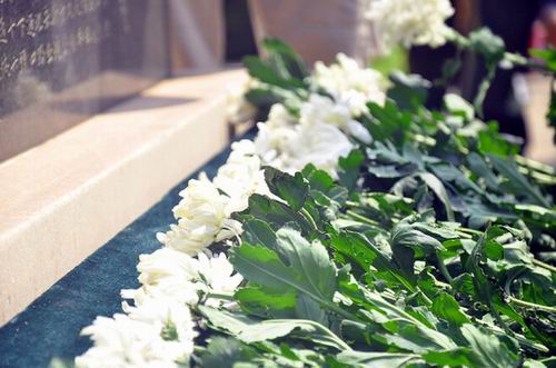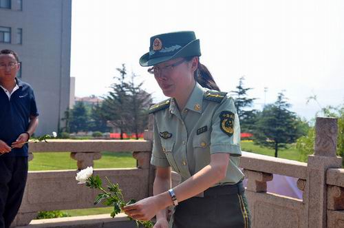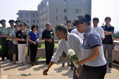王興田烈士年逾七旬的老母親向紀念碑獻花