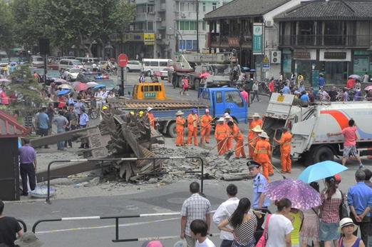 8月12日上午9點37分,浙江省杭州市湖濱消防中隊接警稱杭州吳山廣場一牌坊倒塌。初步確定,現(xiàn)場有2死亡,3人受傷,其中2人輕傷,1人骨折。