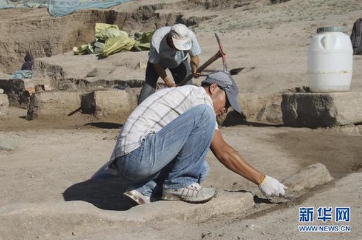 考古人員在一個大圓臺建筑基址清理出的鋪地方磚凸凹不平,據(jù)介紹,這是當時人類活動比較頻繁所致。在這個建筑基址還發(fā)現(xiàn)了成組的石柱