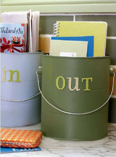 對(duì)小桶進(jìn)行粉刷,然后用剪貼紙制作分類標(biāo)簽,貼在小桶上。