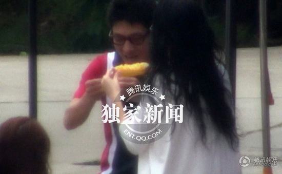 章子怡撒貝寧互相喂食