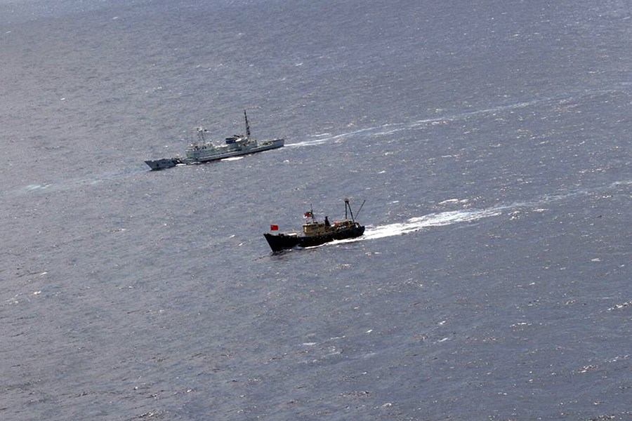 8月15日消息,香港保釣船“啟豐二號(hào)”船員曾健成表示,保釣船已成功攻上釣魚(yú)島石灘,并在灘上擱淺,船員攜帶有中國(guó)國(guó)旗、臺(tái)灣、香港、和澳門(mén)地區(qū)的旗幟。消息稱,有數(shù)十日方人員在島上。圖為日本海岸警衛(wèi)隊(duì)飛機(jī)拍攝的“啟豐二號(hào)”在前往釣魚(yú)島途中,與之并列前行的是一艘日本海岸警衛(wèi)隊(duì)船只。