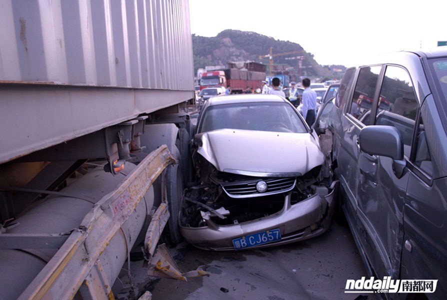 貴州重型貨車與轎車相撞5人遇難 轎車頭被擠扁(組圖)