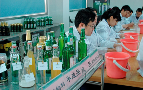 ????消費者入口的啤酒 必是青啤品酒師事先嘗試過千百次的 ???? ????啤酒節(jié)來了,到啤酒城“哈”啤酒成了最流行的話題。雖然我們經(jīng)常喝啤酒,也經(jīng)?!安蛔聿粴w”,但是,如何喝啤酒,如何品啤酒,卻很少有市民知曉。難道喝啤酒就是大口“哈”嗎? ????為了讓市民能在啤酒節(jié)上盡興,能更加享受600多種啤酒,記者采訪到了青島啤酒廠總釀酒師皮向榮。她表示,品啤酒要分“觀、聞、品”三個步驟,“要品啤酒的話,最能享受品酒的量為一口喝15—20毫升?!?/p> ????喝酒更懂酒 ????青啤釀酒師教您品酒 ????采訪中,很多市民表示,在飯店喝酒的時候,在大家激情暢飲的時候,大家都認(rèn)為,喝啤酒就要大口喝,一口喝一杯,這樣才能更好的品味啤酒。另外,倒酒的時候,大家都希望杯子里面的沫越少越好,倒得滿滿的??墒?,皮向榮表示,實際上真正要來欣賞一杯的啤酒的時候,泡沫距離杯口的距離應(yīng)該是3-5厘米。對于具體如何品酒,皮向榮說,有觀、聞、品三步。 ????觀: ????一看色澤二看泡沫 ????一杯酒拿到手我們首先要看一下它的色澤、它的澄清度,是否清亮。我們通常喝到的啤酒是金色光澤,在光線下應(yīng)該是晶瑩剔透的。因為是經(jīng)過過濾的,已經(jīng)把其中的酵母過濾掉了。所以說如果啤酒采用精選的原料、優(yōu)良的釀造工藝,那么它的色澤應(yīng)該是透亮的,在光線下你可以看到它幾乎在發(fā)光。再一個要看泡沫,泡沫要潔白、細(xì)膩。另外,泡沫要持久掛杯,就是這個沫消下去之后,會有一些沫掛在杯壁上。因為泡沫是啤酒非常重要的一個特質(zhì),潔白、細(xì)膩、持久掛杯的泡沫,可以讓消費者更好地享受暢飲帶來的快樂。 ????聞: ????先短呼吸,再長呼吸 ????聞主要是聞酒的風(fēng)味。倒半杯酒,輕輕地?fù)u晃一下,這樣啤酒揮發(fā)性的風(fēng)味物質(zhì)就可以揮發(fā)到空間里來了,這時候你拿到鼻前,先是兩下短呼吸,輕輕的吸一下,就可以體會到這里面的氣味。下一步,再搖晃一下手中的杯子,這一次放到鼻前要做一個長呼吸,再來感受一下。這時候有沒有酒花香?有沒有麥香?有沒有異雜味?或者一些不愉快的氣味。好啤酒聞的時候麥香和酒花香撲鼻而來,清香淡雅,濃郁不散。 ????品: ????一口喝15-20毫升最佳 ????品酒當(dāng)然要喝下去,那么我們一般喝多少最佳呢?皮向榮說,要品酒的話,應(yīng)該是喝15-20毫升。保證酒液可以鋪滿你的舌面,喝進(jìn)去之后舌頭稍微滾動一下,讓整個口腔都能感受到啤酒。這時候你會感到啤酒典型的特點,爽口性和剎口力。據(jù)介紹,現(xiàn)在啤酒中的風(fēng)味特點能夠檢測得到的已經(jīng)有一百多種,但是品的過程并不是把酒中的一百多種物質(zhì)品嘗出來,重點是這些物質(zhì)在酒中是否能夠很協(xié)調(diào)地融合在一起的?!俺R姷娘L(fēng)味物質(zhì)如麥芽香氣、酒花香氣等都屬于能聞到的風(fēng)味,而爽口性和剎口力是我們能品嘗到的?!?/p> ????青啤有啥不同? ????更柔和、更爽口,不信您品品 ????作為百年品牌,青島啤酒已經(jīng)成為全球通行的中國名片,那么青島啤酒和其他的啤酒有什么不同呢? ????對此,皮向榮說,青島啤酒的特色從氣味來說,有一種優(yōu)雅的酒花香,還有一個濃郁適中的麥芽香,再一個泡沫潔白、細(xì)膩、持久掛杯。另外從口感上來說,大家應(yīng)該感受到,它雖然是屬于淡爽型,因為濃度不同,有一些可能是更醇厚一點,有一些更淡爽一點,但總之青島啤酒特色是柔和、協(xié)調(diào)、爽口。再一個是協(xié)調(diào),就是說有一些物質(zhì)并不是說越多越好,或越少越好,關(guān)鍵在于這些物質(zhì)在一起能有一個平衡點,青島啤酒所追求的是醇脂平衡、柔和協(xié)調(diào)性和爽口性,讓消費者在喝青島啤酒時產(chǎn)生愉悅的心情。 ????青島啤酒的科研中心是國家級重點實驗室,在行業(yè)中具有領(lǐng)先的研發(fā)能力。此外我們認(rèn)為好品質(zhì)不光是生產(chǎn)、檢驗出來的,更是體驗出來,消費者所入口的東西,必是青啤品酒師事先嘗試過千百次的。從而保證青島啤酒始終為消費者提供大家喜好的啤酒,真正為生活創(chuàng)造快樂。 |