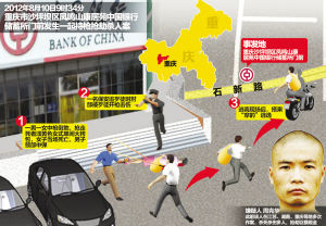 2012年8月10日上午,重慶市沙坪壩區(qū)中國銀行一儲蓄所門前發(fā)生一起持槍搶劫殺人案。犯罪嫌疑人周克華持仿“五四”式手槍殺死1人、殺傷2人,搶走死者隨身財物后潛逃。