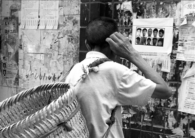 村民在看警方針對周克華發(fā)出的通緝令。