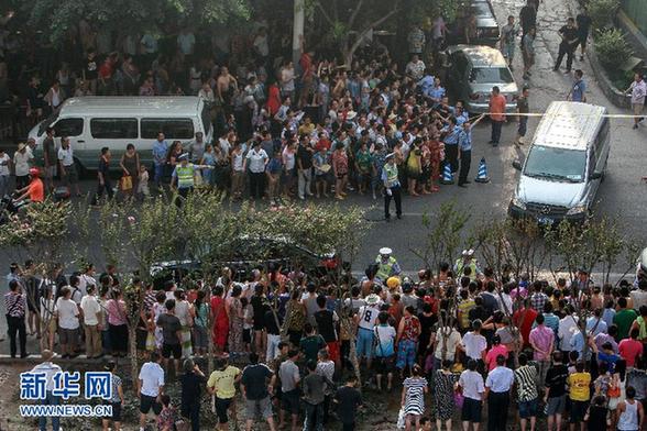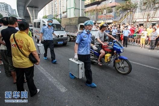 8月10日,警方正在案發(fā)現(xiàn)場進行取證工作。新華社發(fā)