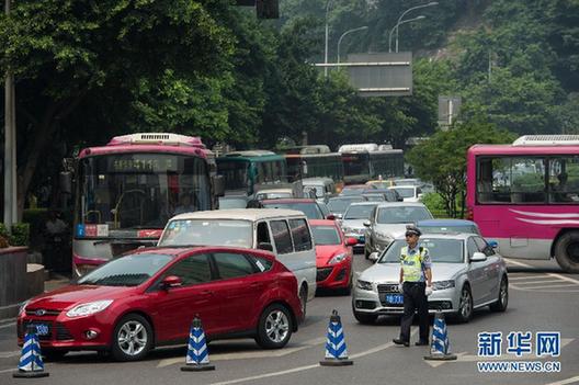 8月10日,重慶警方在主干道設(shè)卡檢查過往車輛。