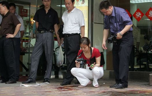 8月14日,在重慶沙坪壩區(qū)童家橋,警方刑偵技術(shù)人員勘查現(xiàn)場。當(dāng)日6時50分,在公安部統(tǒng)一指揮下,經(jīng)過重慶等地公安機關(guān)連續(xù)數(shù)日艱苦奮戰(zhàn),犯下累累罪行的公安部A級通緝犯周克華在重慶沙坪壩區(qū)童家橋被公安民警成功擊斃。至此,蘇湘渝系列持槍搶劫殺人案件成功告破。