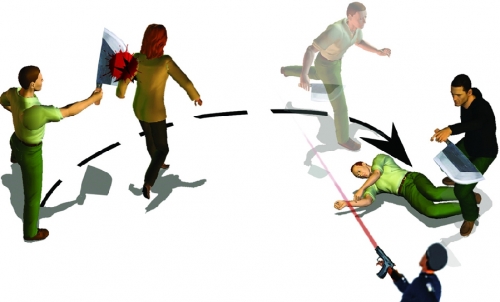 2012年8月15日15時33分許,龍城派出所接分局110轉(zhuǎn)來一先生報警稱:在龍華街道人民南路與工業(yè)路交界處看到一掃地的阿姨被人砍斷手腕躺在地上,需急救。接報后,龍城派出所總臺民警立即指令在該路段巡邏執(zhí)勤的民警王一(警號:066674)帶領(lǐng)5名巡防隊員黃智夷、張向東、朱紅定、樂紅波、張玉佳趕到現(xiàn)場處置,并通知120急救