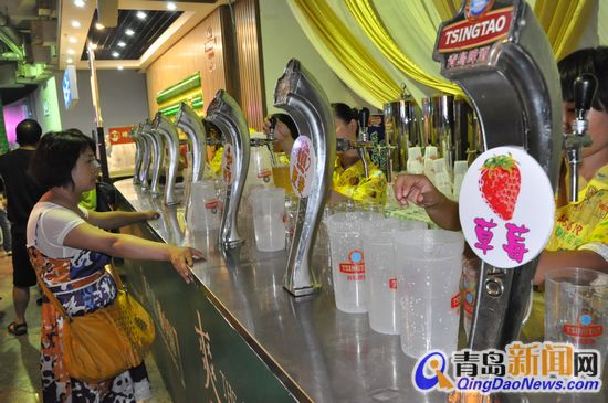 ??? 工作人員解女士介紹說,“本屆啤酒節(jié)主推兩大活動,一是活動期間,每晚18點后,凡打兩扎1.5升啤酒,青啤大世界就送一張獎券,晚20點半開獎,每晚抽獎送出手機兩部。另外是,凡周一到周四晚18點前,購買任意一種1.5升啤酒,即送0.5升原漿,優(yōu)惠活動史無前例。”據(jù)了解,自‘青島啤酒狂歡夜’以來,青啤大世界幾乎場場爆滿,喝掉啤酒近百桶。