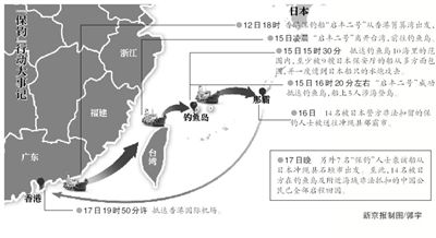 經(jīng)中國政府多次嚴(yán)正交涉和多方努力,其中7人當(dāng)天傍晚時分從沖繩那霸機場乘機返回香港,另外7人當(dāng)晚乘機前往沖繩縣石垣市,在檢查和確認(rèn)保釣船狀態(tài)后已乘船離開。
