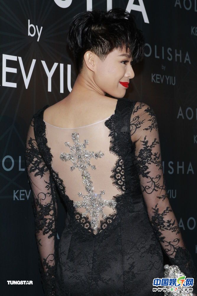胡杏兒烈焰紅唇一頭干練短發(fā) 黑蕾絲大露背pk嫩模(圖)