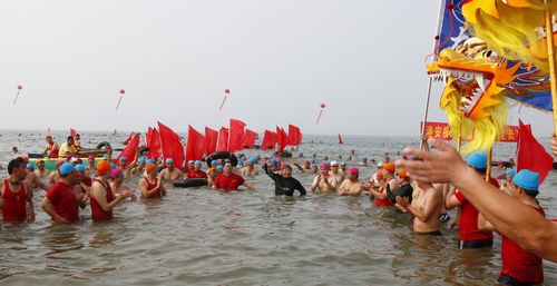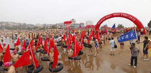 8點(diǎn)鐘,青島港董事局主席、總裁常德傳發(fā)表了講話并鳴槍發(fā)令,激情橫渡匯泉灣活動(dòng)正式開(kāi)始。2000多名海港職工組成的6大橫渡方陣,首尾相接。在《美麗的青島港》的激揚(yáng)旋律中,職工們高舉“凝聚合力 擁抱蔚藍(lán)”、“勇當(dāng)率先科學(xué)發(fā)展實(shí)現(xiàn)藍(lán)色跨越的排頭兵”、“魅力大港 藍(lán)色跨越”、“溫馨西聯(lián)”、“激情橫渡匯泉灣 做大做強(qiáng)董家口”等大型紅色標(biāo)牌矗立海面上,格外突出,引人注目。(青島新聞網(wǎng)記者 孫璐璐)