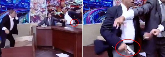 約旦電視節(jié)目險變槍戰(zhàn)議員話不投機槍指對手 2012年7月,約旦一場議員直播辯論會現(xiàn)場出現(xiàn)驚險場面,一名議員與一名前議員在辯論時發(fā)生激烈爭吵,前者向后者丟擲鞋子并突然掏出手槍加以威脅,令現(xiàn)場所有人大驚失色,所幸事件最終以無人受傷收場。據(jù)悉,這場直播的電視辯論會當?shù)貢r間7月5日晚間在約旦“果薩特”電視臺播出,參與實況辯論的現(xiàn)任國會議員沙瓦卡與前議員穆瑞德話不投機,互相辱罵。