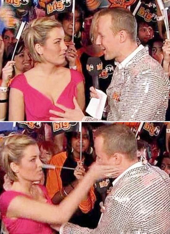男主持直播中胸襲女同事遭扇耳光 2009年2月,一名德國電視男主持人在電視直播中“襲擊”女同事胸部,他因此遭女同事扇耳光。但該男主持認(rèn)為:“真正的丑聞是她打了我的耳光,而不是我的摸胸行為?!?/p>
