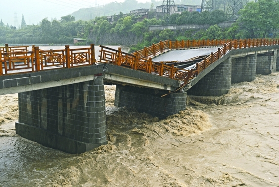 從紫坪鋪至龍池的必經(jīng)之路白沙大橋受損。