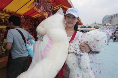 記者在采訪中了解到,不少游客前來玩小游戲都不差錢,掏個一兩百不在話下。在投籃球處,一對年輕伴侶先后玩了5次,共用掉了20個游戲幣,花了100元錢?,F(xiàn)場的工作人員告訴記者,前天,一幫本地市民前來玩奇妙彩虹游戲,花了200元錢,最后中了一個大獎,抱走一個維尼熊毛絨玩具,還中了兩個小獎。