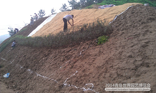 ????為改善該區(qū)域總體景觀,體現(xiàn)科技創(chuàng)新,在充分考察山體綠化噴播等傳統(tǒng)植被綠化施工工藝的基礎(chǔ)上,園藝部采用新型立體墻(柔性或薄壁材料加拉桿式自承重?fù)跬翂Γ┚G化及植物纖維毯(德國&荷蘭)專利技術(shù)。目