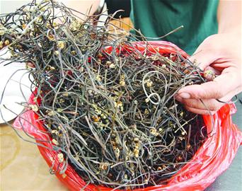 張永宏告訴記者,每年拳頭菜大約能收五茬,當(dāng)然春天時(shí)候口感最鮮嫩了。一般來(lái)講,新鮮的可以賣15元一斤,干的可以賣150到200元一斤。另外,張永宏還有自己的加工廠,這些拳頭菜收獲以后,在加工廠直接加工成泡菜,還能出口到韓國(guó)、日本等地,售價(jià)每斤在200元以上。