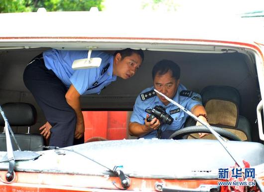 交警部門的技偵人員正在事故現(xiàn)場(chǎng)進(jìn)行勘察(8月20日攝)。