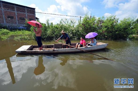 8月21日,在廣西南寧市邕寧區(qū)蒲廟鎮(zhèn)新新村,村民乘船在被水淹沒的馬路上出行。受今年第13號臺風(fēng)“啟德”影響,廣西南寧市邕江出現(xiàn)超警戒水位,邕寧區(qū)、西鄉(xiāng)塘區(qū)沿岸附近部分村莊遭受洪災(zāi)。