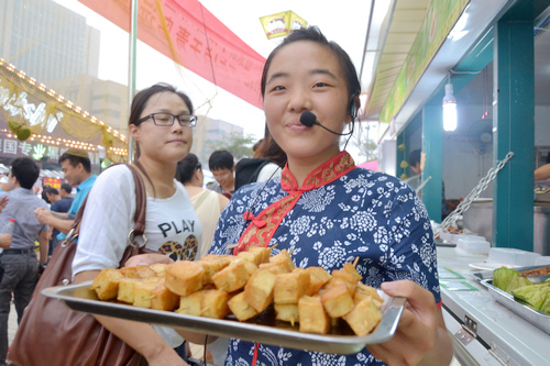 啤酒節(jié)場(chǎng)館里,微山湖“湖鮮”的攤點(diǎn)格外引人注意